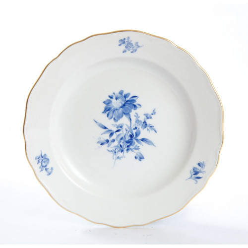 Teller, Form "Neuer Ausschnitt", Blume 3 mitte, kobaltblau, Goldrand, ø 18 cm