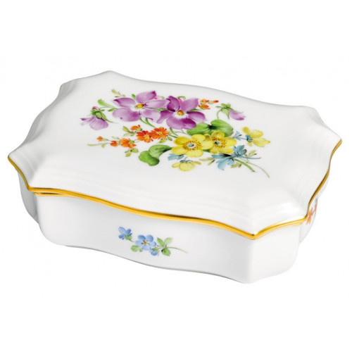 Dose, Form "Neuer Ausschnitt", Vintage Blume 3,Motiv - Veilchen, Goldrand, L 10 cm