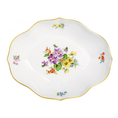 Schälchen, Form "Neuer Ausschnitt", Vintage Blume 3,Motiv - Veilchen, Goldrand, L 18 cm