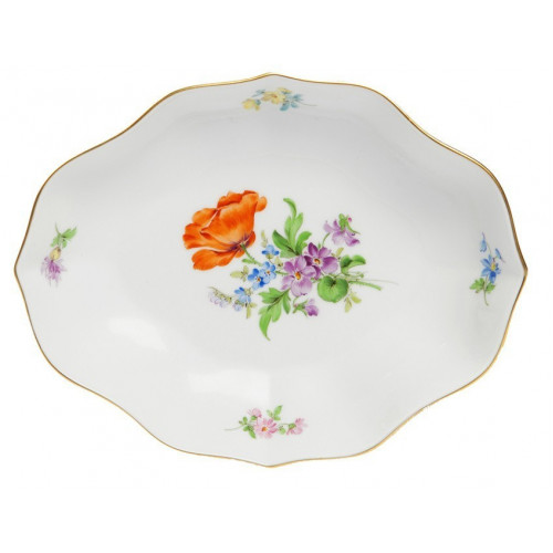 Schälchen, Form "Neuer Ausschnitt", Vintage Blume 3,Motiv - Feuermohn, Goldrand, L 16 cm