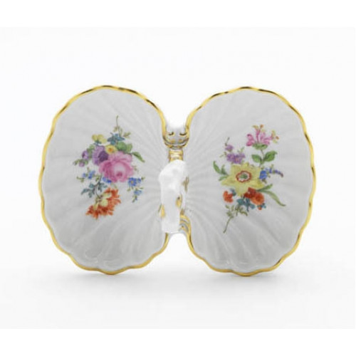 Salzgefäß, Bukett mitte, bunt, Goldrand, L 11,5 cm