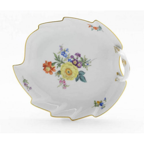 Konfektblatt, Bukett mitte, bunt, Goldrand, L 19 cm