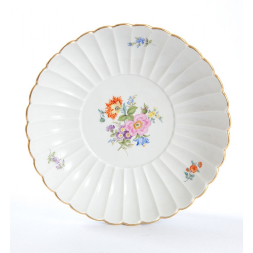 Beilageschale rund,gemuschelt, Form "Neuer Ausschnitt", Bukett mitte, bunt, Goldrand, ø 21 cm