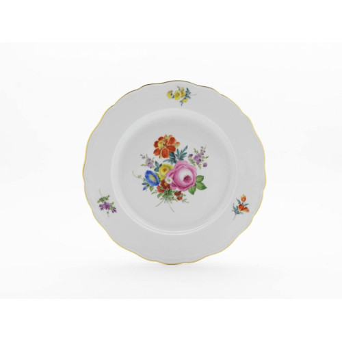 Speiseteller, Form "Neuer Ausschnitt", Bukett mitte, bunt, Goldrand, ø 28 cm