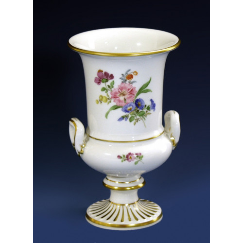 Vase, Bukett mitte, bunt, Goldrand, H 18,5 cm