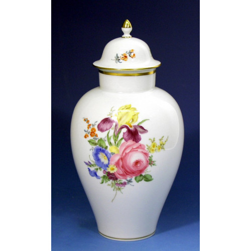Vase, Bukett mitte, bunt, Goldrand, H 24,5 cm