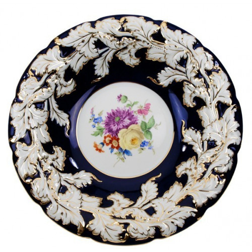 Schale, Bukett mitte, bunt, königsblau glasiert, Gold angespitzt, 26 cm