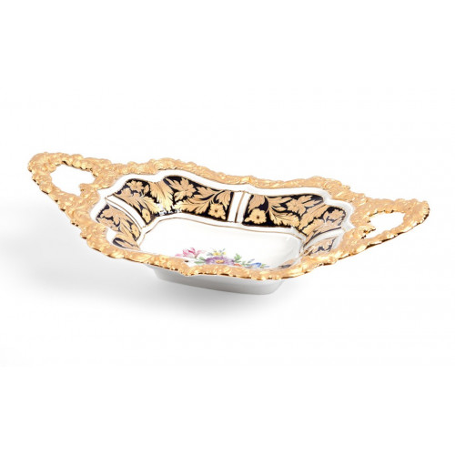 Korb, Bukett mitte, bunt, königsblau glasiert, Goldbronze, 35x21 cm