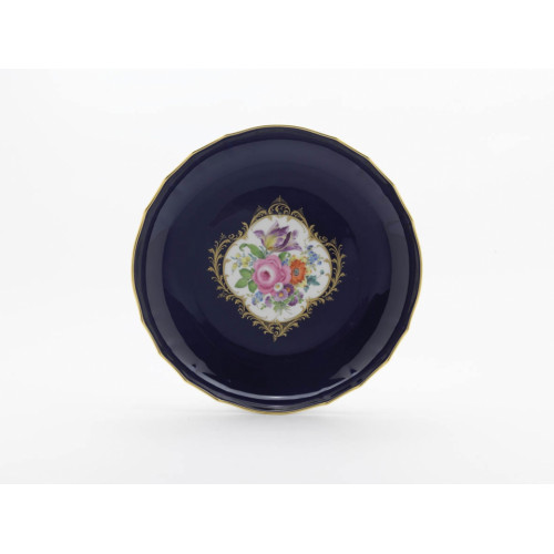 Kuchenschale, Bukett mitte,bunt,königsbl.glas.1 Schild,Goldgroteskes Schild,Goldrand, ø 28 cm