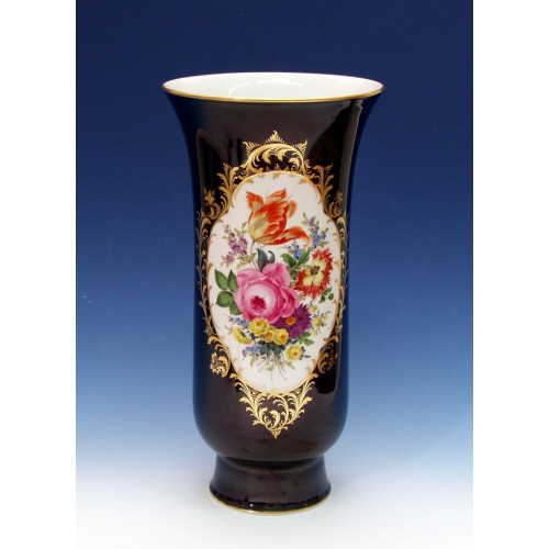Vase, Bukett mitte,bunt,königsbl.glas.1 Schild,Goldgroteskes Schild,Goldrand, H 41 cm