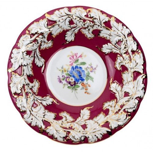 Schale, Bukett mitte, bunt, purpur glasiert, Gold angespitzt, 26 cm