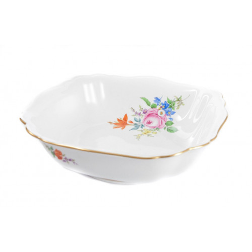 Schüssel, eckig, Bukett schräg, bunt, Goldrand, L 21 cm