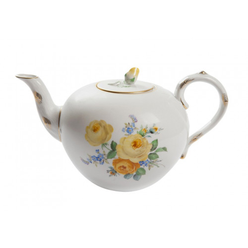 Teekanne, Rosenbukett mit Vergißmeinnicht, gelb, Goldrand, V 1,00 l