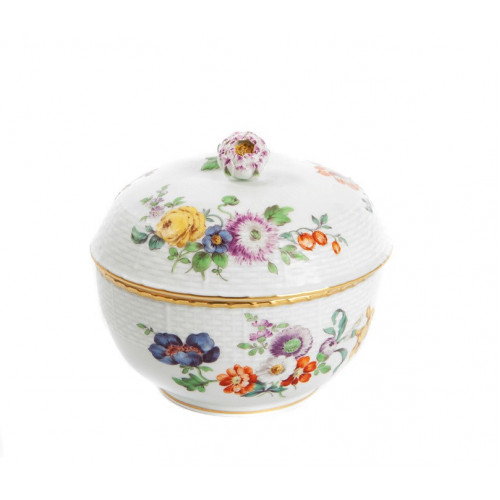 Zuckerdose, Bukett, alte Manier, bunt mit Kupferfarben, Goldrand, 9,5 cm