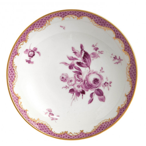 Untertasse zu 10582, Form "Glatte Form", Bukett, alte Manier, Schuppen-Mosaik, purpur, Goldabschluß, Goldrand, 15 cm