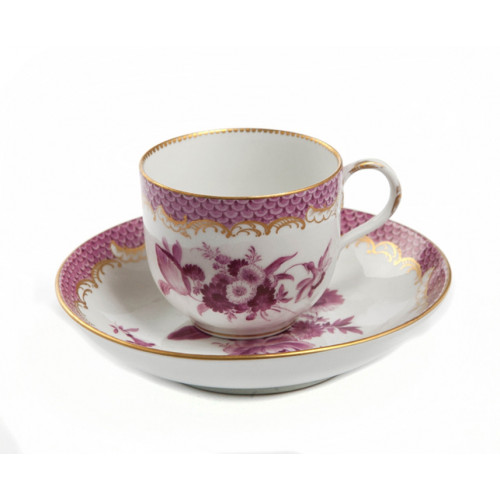 Espressotasse Glatte Form, Bukett, alte Manier, Schuppen-Mosaik, purpur, Goldabschluß, Goldrand, V 0 l