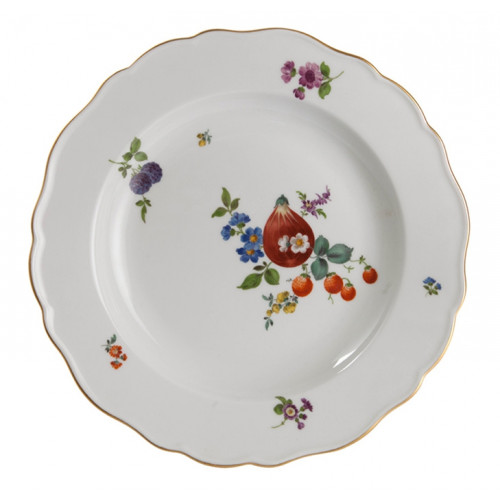 Teller, Form "Neuer Ausschnitt", Frucht- u. Blumenmalerei, alte Manier, bunt, Goldrand, ø 23 cm