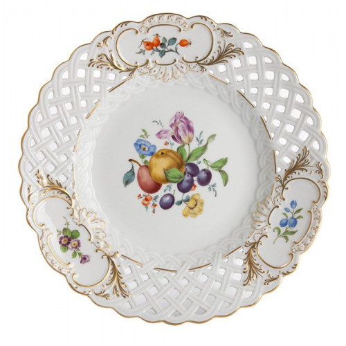 Teller m.H., Frucht-u.Blumenmal.,alte Manier,bunt,Schilderornam.goldstaff.,Goldrand,