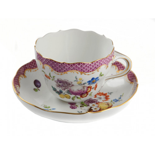 Kaffeetasse m.U., Form "Neuer Ausschnitt", Frucht- u.Blumenmal.bunt,Schuppenmosaik,purpur,Goldabschluß,Goldrand, V 0,20 l
