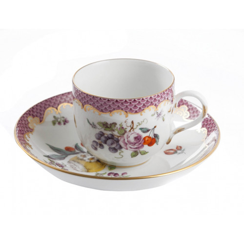 Espressotasse Glatte Form, Form "Glatte Form", Frucht- u.Blumenmal.bunt,Schuppenmosaik,purpur,Goldabschluß,Goldrand, V 0 l