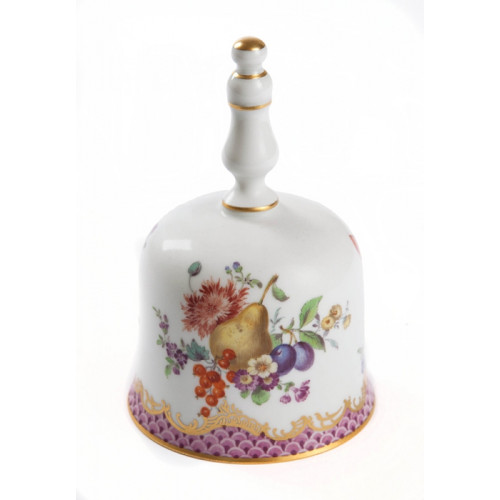 Tischglocke, Frucht- u.Blumenmal.bunt,Schuppenmosaik,purpur,Goldabschluß,Goldrand, H 11 cm