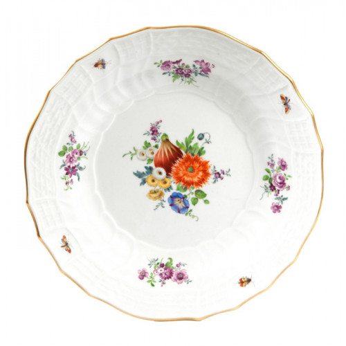 Speiseteller, Frucht-u.Blumenm.,alte Manier,m.Insekt.,bunt,Bukettch.purp.grün,Goldr., 25,5 cm