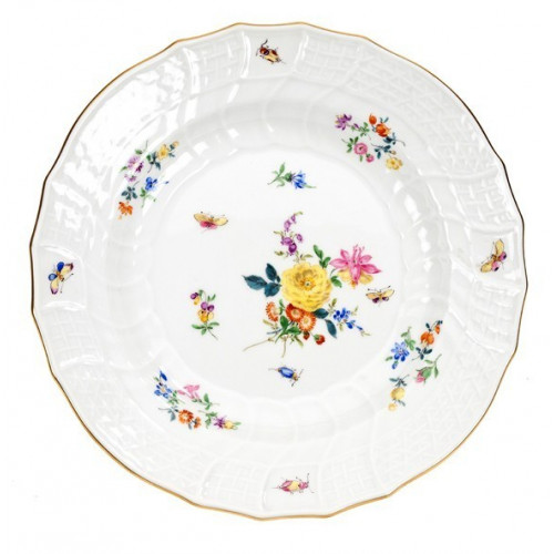 Teller, Blumen und Insekten, bunt, Goldrand, 18,5 cm