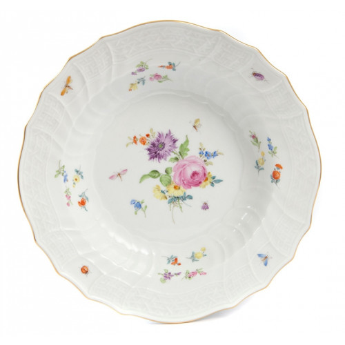 Suppenteller, Blumen und Insekten, bunt, Goldrand, 22,5 cm