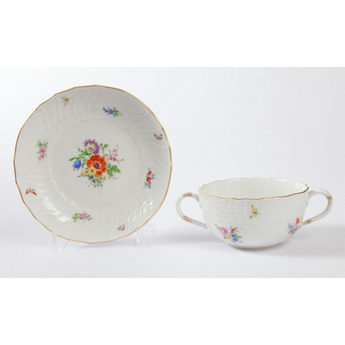 Suppentasse m.U., Blumen und Insekten, bunt, Goldrand, 0,22 l