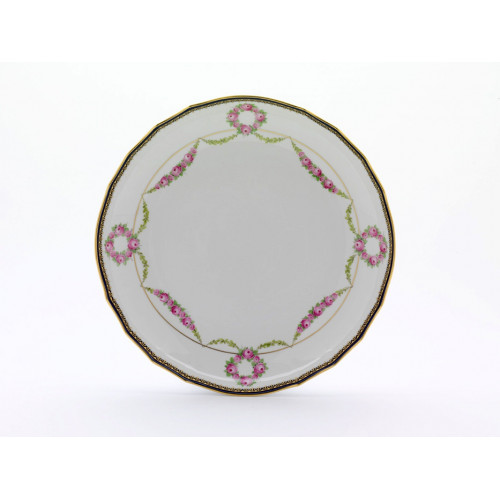 Kuchenschale, Form "Neuer Ausschnitt", Rosenranken u.Kränzch.bunt,königsbl.Reifen glas.,Gold-A-Kante,Goldrand, ø 28 cm