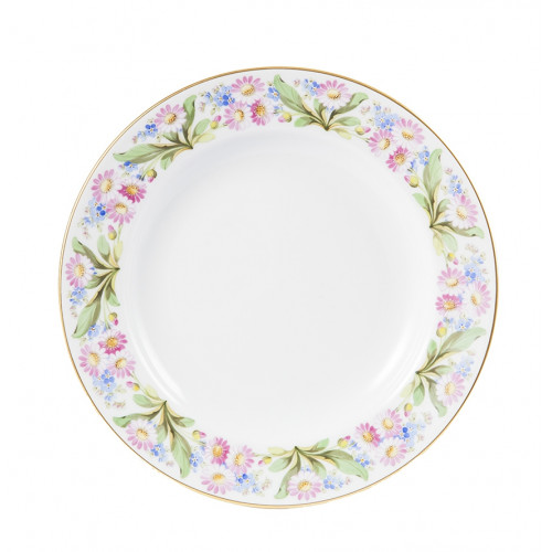 Teller, Form "Glatte Form", Blumenkranz mit Tausendschönchen und Vergißmeinnicht, bunt, Goldrand, ø 19 cm