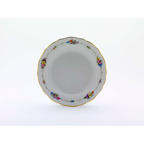 Teller, Form "Neuer Ausschnitt", Blumenkranz, bunt, Goldrand, ø 20 cm