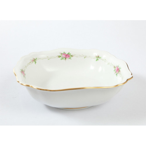 Schüssel, eckig, Form "Neuer Ausschnitt", Rosenkranz, bunt, Goldrand, L 21 cm