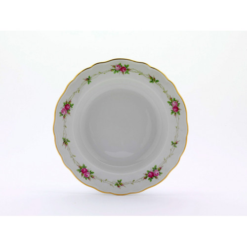 Suppenteller, Form "Neuer Ausschnitt", Rosenkranz, bunt, Goldrand, ø 24 cm