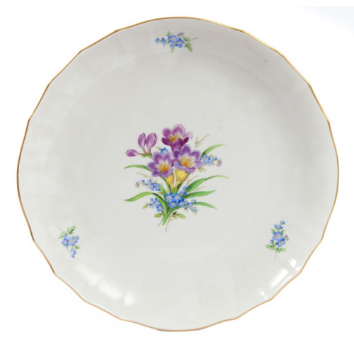 Kuchenschale, Form "Neuer Ausschnitt", Freesien und Vergißmeinnicht, bunt, Goldrand, ø 28 cm