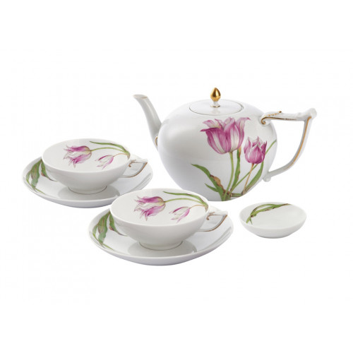 Tee-Arrangement, "I-Form", Tulpenmalerei