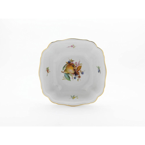 Schüssel, eckig, Form "Neuer Ausschnitt", Fruchtmalerei, bunt, Goldrand, L 26 cm