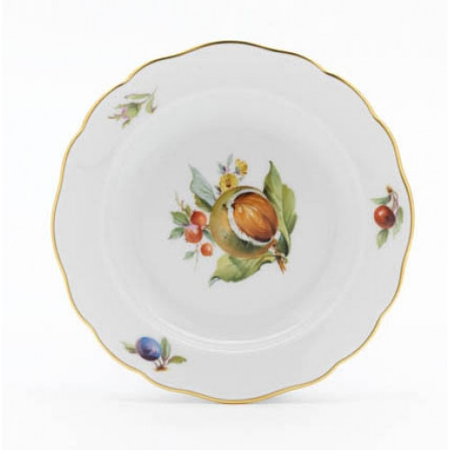 Teller, Form "Neuer Ausschnitt", Fruchtmalerei, bunt, Goldrand, ø 14 cm
