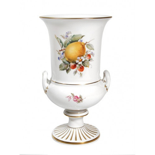 Vase, Fruchtmalerei, bunt, Goldrand, H 23 cm