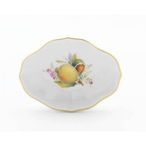 Schälchen, Form "Neuer Ausschnitt", Fruchtmalerei, bunt, Goldrand, L 8 cm