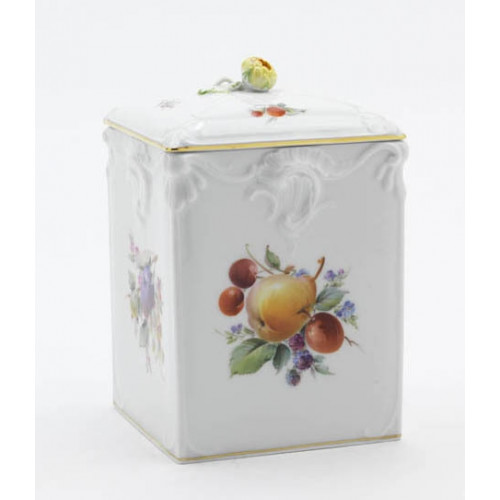 Teedose, Fruchtmalerei, reich, bunt, 5 Farben, Goldrand, 23,5 cm