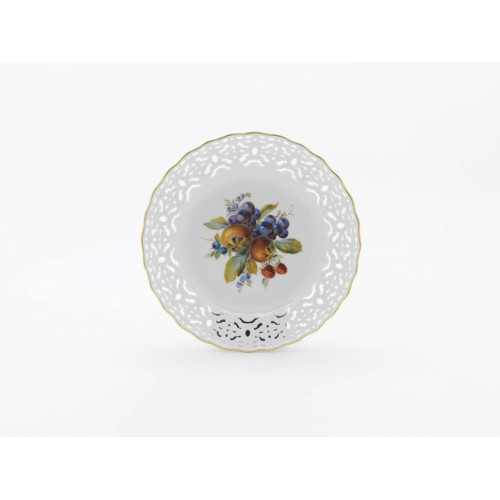 Teller, durchbr., Fruchtmalerei, reich, 5 Farben, SinnBilder 2004, Goldrand, ø 21 cm