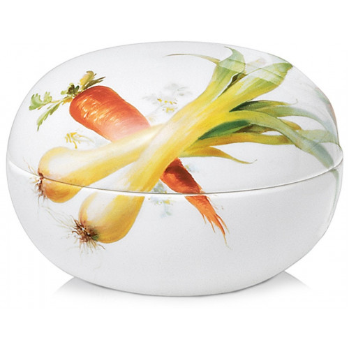 Dose, Gemüsemalerei, naturalistisch, leicht, bunt, weißer Rand, ø 7,5 cm