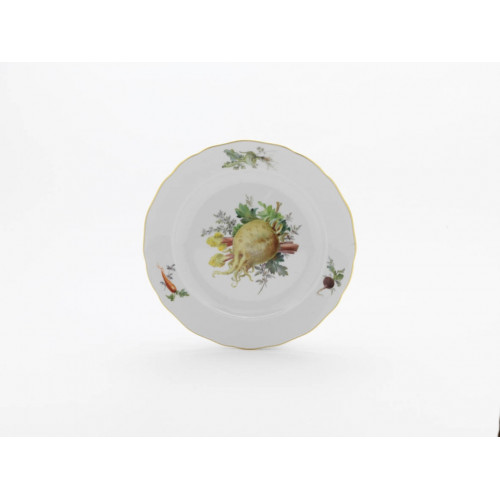 Teller m.H., Gemüsemalerei, reich, bunt, Goldrand, ø 25 cm