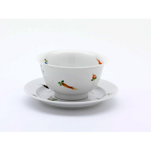 Teller, Form "Glatte Form", Gemüsemalerei, naturalistisch, gestreut, bunt, weißer Rand, ø 20 cm