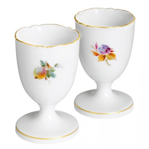 Eierbecher, Form "Neuer Ausschnitt", Vintage Fruchtmalerei, Motiv - Frucht- und Blumenzweige, Goldrand, H 7 cm