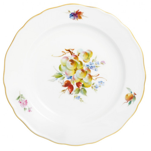 Teller, Form "Neuer Ausschnitt", Vintage Fruchtmalerei, Motiv - Wein, Goldrand, ø 20 cm