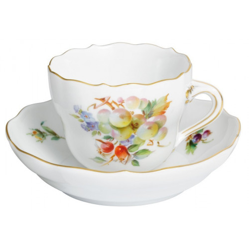 Espressotasse, Form "Neuer Ausschnitt", Vintage Fruchtmalerei, Motiv - Wein, Goldrand, V 0,1 l