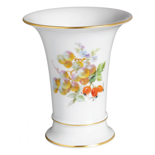 Vase, Form "Neuer Ausschnitt", Vintage Fruchtmalerei, Motiv - Wein, Goldrand, H 14 cm