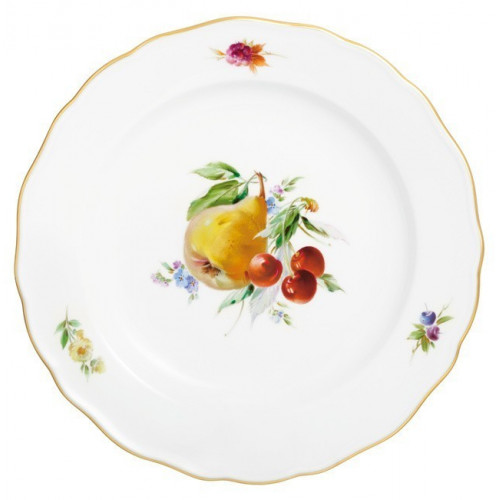 Teller, Form "Neuer Ausschnitt", Vintage Fruchtmalerei, Motiv - Birne, Goldrand, ø 20 cm